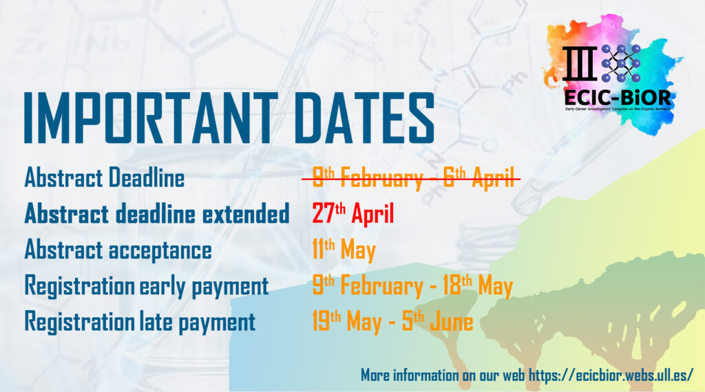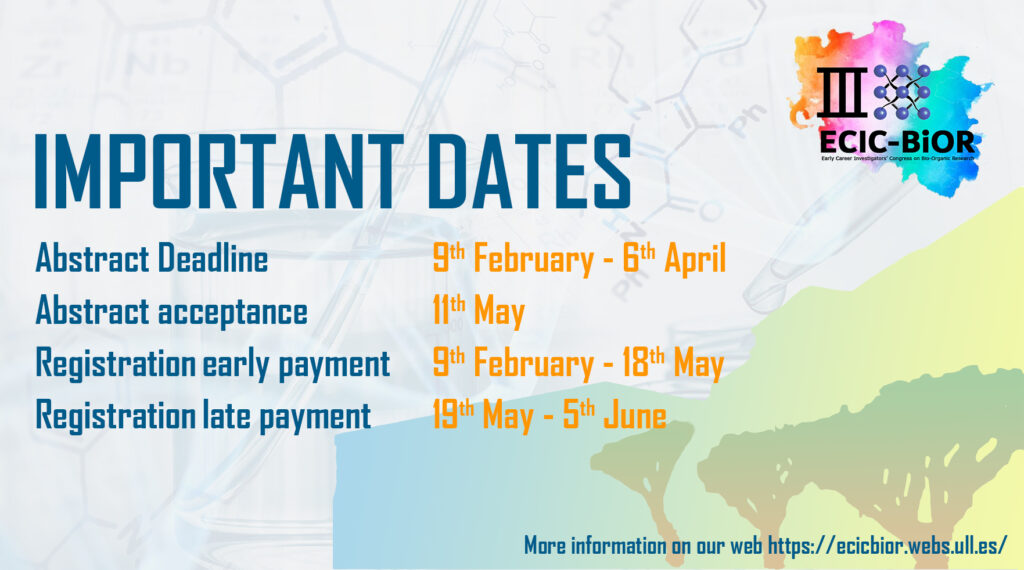 We are delighted to announce the Call for Abstracts for the III Early Career Investigators’ Congress on Bio-Organic Research (III ECIC-BIOR), which will be held from June 3th to 5th at the Instituto Universitario de Bio-Orgánica «Antonio González». We invite researchers to submit abstracts for oral presentations, flash talks, or poster presentations. Selecting the most suitable format for your presentation is crucial to effectively sharing your research with the right audience. Choose an oral or flash presentation to deliver your findings in a concise, dynamic format or a poster presentation to visually highlight your work and engage in in-depth discussions. Whichever format you select, your contribution is integral to the success of this congress, and we look forward to showcasing the diverse and innovative research of early-career researchers.